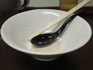 全体に、くどすぎず適度な脂分のラーメンだったので、いつも通りにスープまで完飲。