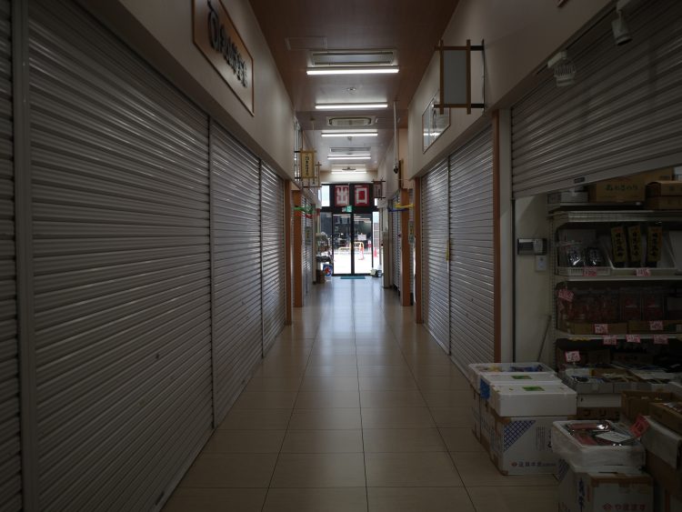 朝の早い市場内ですから、平日の正午すぎにはシャッター街のようになっていますが・・・