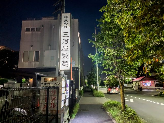 リアルラーメンの設置場所は、東久留米市八幡町一丁目の三河屋製麺の敷地前。