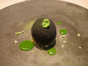 鮮やかな黄色の部分とやや黒味がかった部分の雲丹が盛り付けられていて、真ん中に卵の黄身。