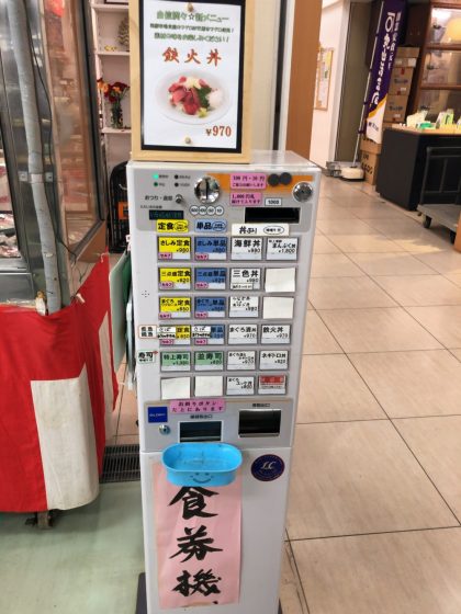 一度は「天然まぐろ漬丼」に決めたのですが、券売機の上の「天然本まぐろを使用」したという鉄火丼のボードに魅せられて、急遽変更。