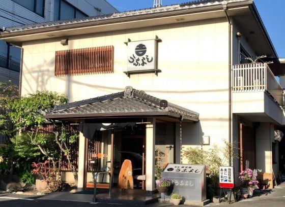 うなよしさんの外観は、入り口に瓦葺きの軒がついた鰻屋らしい和風一軒家。